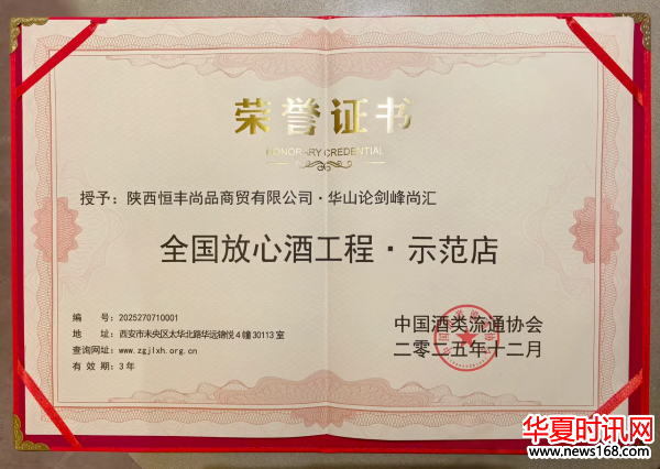 此外,华山论剑峰尚汇凭借规范的运营管理与优质的消费服务,获评“全国放心酒工程·示范店”。中国酒类流通协会全国放心酒示范工程旨在进一步规范酒类流通秩序,努力营造安全放心的消费环境,保障消费者饮酒安全,促进酒类行业健康快速发展。自创建以来,经过协会审核、专家审议,业内公示等方式完成最终评审,授牌示范企业均为坚持规范、诚信经营,为酒类行业健康发展做出突出贡献的企业典范。作为华山论剑品牌终端服务的重要载体,华山论剑峰尚汇则是第三次获此殊荣。