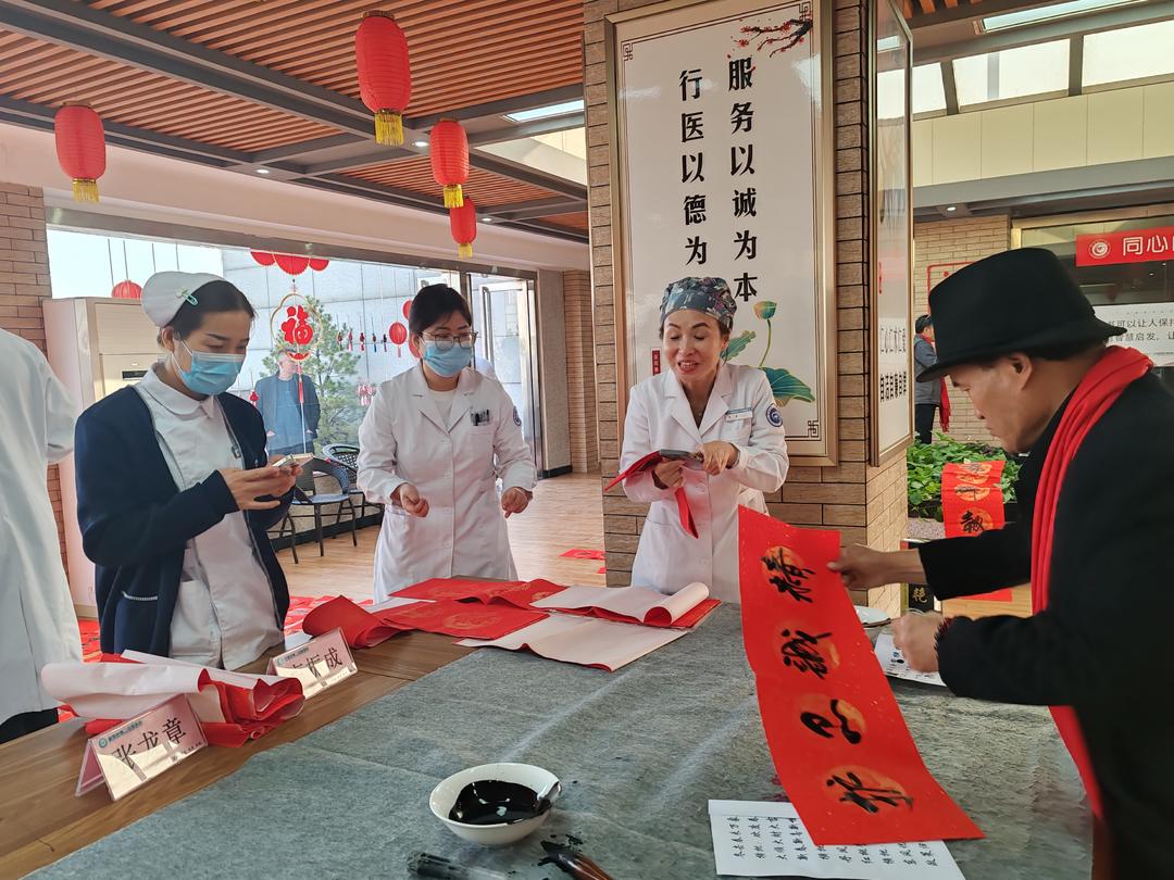 “这幅春联接地气、有内涵,让我们感受到了传统文化的魅力和浓浓的新春暖意。”一位患者手持春联,面露笑意。活动中,笔墨书香驱散了病痛带来的阴霾,医护人员与患者围坐交流,在品鉴书法艺术的过程中拉近距离、增进理解。医护人员表示,此次活动既是医院精神文明建设的具体实践,也是党建引领下人文关怀的生动体现,不仅丰富了医患群体的文化生活,更凝聚起医护人员立足岗位、用心服务患者的工作力量。医院以文化活动为桥梁,将“患者至上”的服务理念融入细节,让医疗服务更有温度。