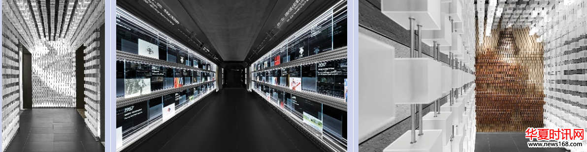步入室内,店铺空间进一步围绕“古—今—未”的脉络铺陈。拱形矩阵构筑的时空隧道徐徐延展,宛若古城门洞,成为连接古今与未来的入口。西安文化地标钟楼、大雁塔、秦岭山脉与雪道轨迹在此交叠融合,编织出关于西安城市文化与迪桑特冰雪基因专属的空间叙事。